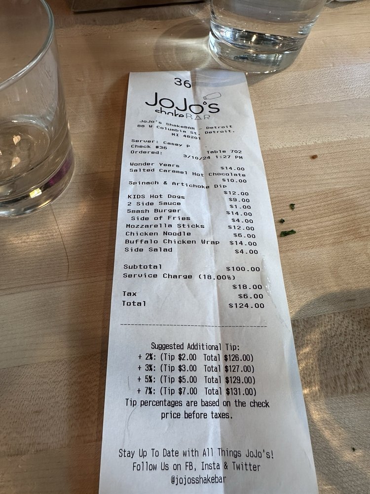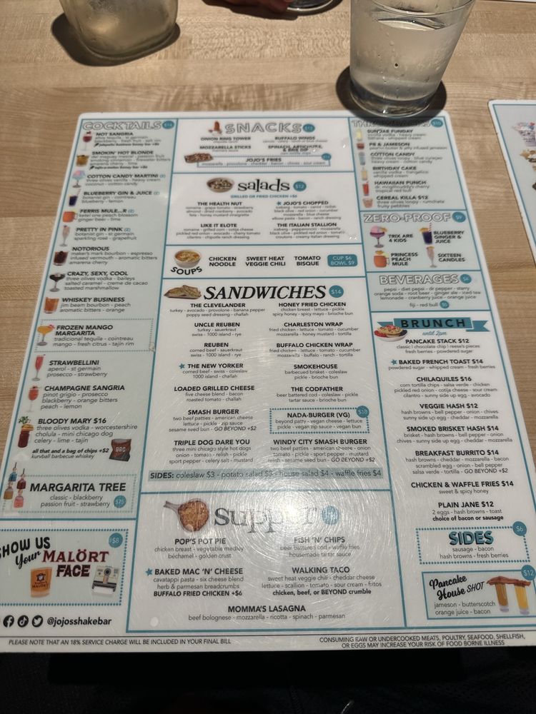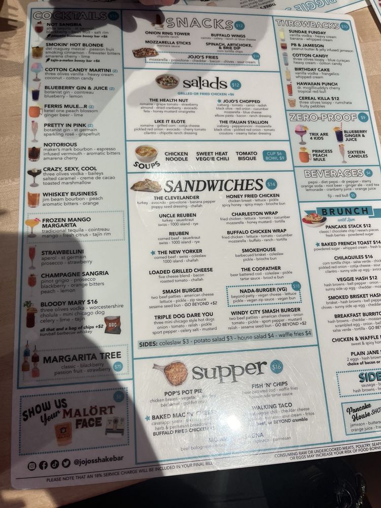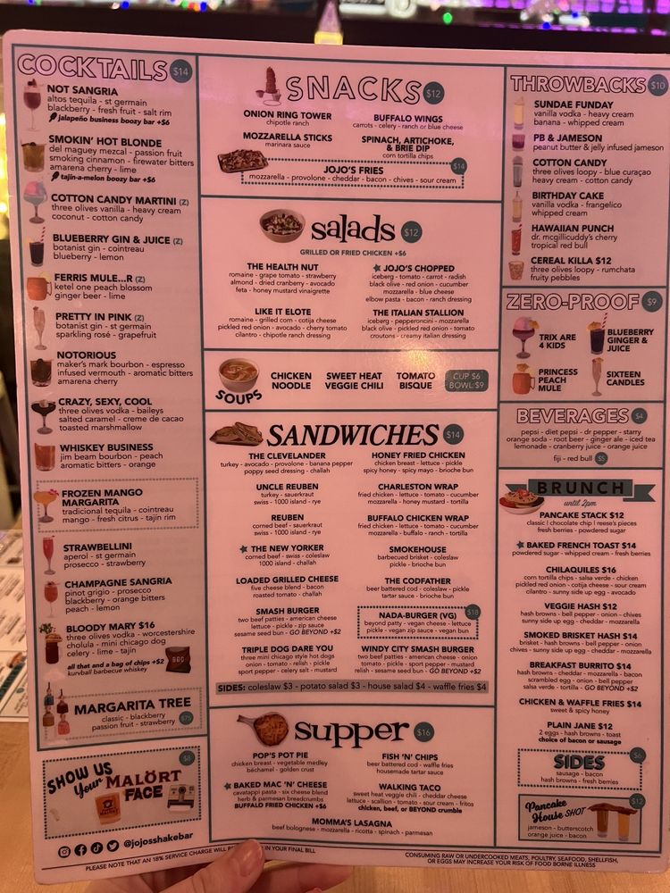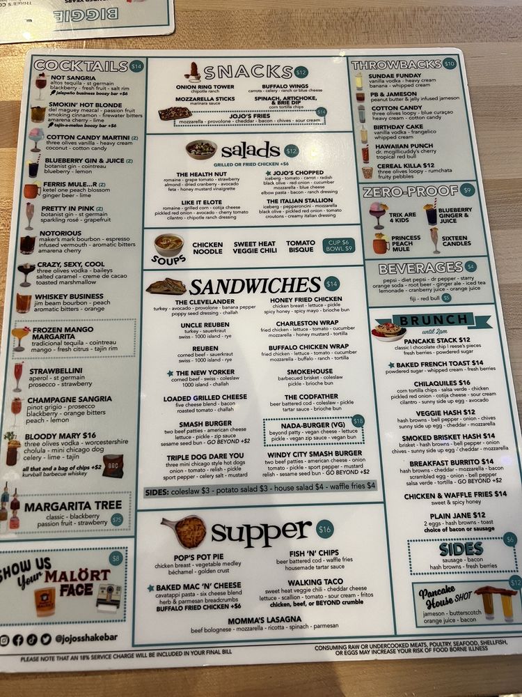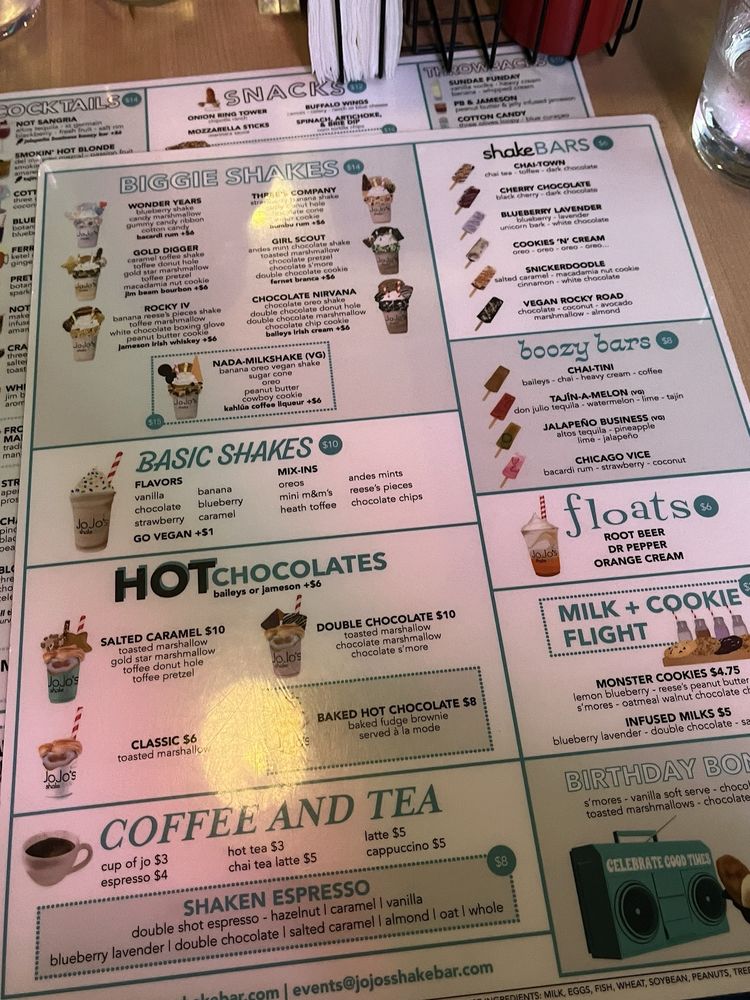Introducing the menu at JoJo’s Shake Bar in Detroit, where indulgence meets quality. This shake bar offers a diverse range of snacks, from Buffalo Wings to Mozzarella Sticks. Their salads like The Health Nut and JoJo's Chopped are a refreshing twist on traditional greens. And don't miss out on their soups, including Chicken Noodle and Roasted Tomato Bisque. Customers rave about the unique options on the menu, like the notorious and JoJo's Chopped salad without onion. With quick service, a fun 80's and 90's theme, and over-the-top shakes, JoJo’s Shake Bar promises a satisfying dining experience. Don't forget to try their delicious dishes and enjoy the lively atmosphere at 88 W Columbia St in Detroit, MI.